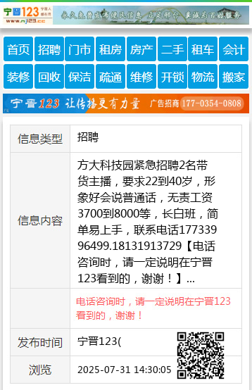方大科技园紧急招聘2名带货主播,要求22到40岁,形象好会说普通话,无责工资3700到8000等,长白班,简单易上手,联系电话17733996499.18131913729 【电话咨询时,请一定说明在宁晋123看到的,谢谢!】 |