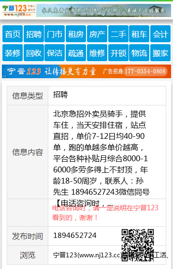 北京急招外卖员骑手,提供车住,当天安排住宿,站点直招,单价7-12日均40-90单,跑的单越多单价越高,平台各种补贴月综合8000-16000多劳多得上不封顶,年龄18-50周岁,联系人:孙先生 18946527243微信同号