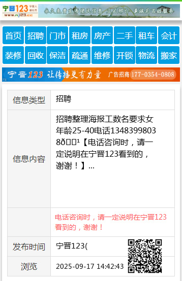 招聘整理海报工数名要求女年龄25-40电话13483998038🌹