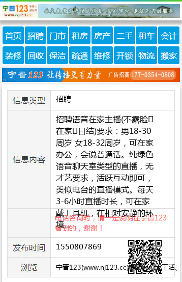 招聘语音在家主播(不露脸➕在家➕日结) 要求:男18-30周岁 女18-32周岁,可在家办公,会说普通话。 纯绿色语音聊天室类型的直播,无才艺要求,活跃互动即可,类似电台的直播模式。 每天3-6小时直播时长,可在家戴上耳机,在相对安静的环境下就可以工作了。 接受新手小白,无经验