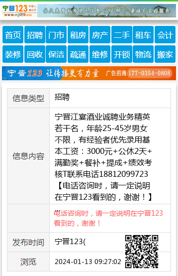 | 防骗提醒: | 宁晋123(www.nj123.cc)提醒您:手工活、网络兼职、刷单,都是骗子!凡以各种名义收取费用的都是骗子!找工作是往兜里挣钱,让你往外掏钱的都是骗子!异地招聘请提高警惕,谨防诈骗! |