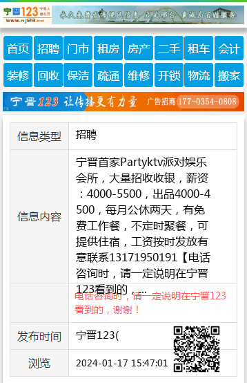 宁晋首家Partyktv派对娱乐会所,大量招收收银,薪资:4000-5500,出品4000-4500,每月公休两天,有免费工作餐,不定时聚餐,可提供住宿,工资按时发放有意联系13171950191 【电话咨询时,请一定说明在宁晋123看到的,谢谢!】 |