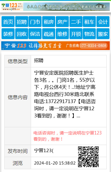 宁晋安定医院招聘医生护士各3名,。门岗1名,55岁以下,月公休4天!..!地址宁高路电视台西行30米路北联系电话:13722917137 【电话咨询时,请一定说明在宁晋123看到的,谢谢!】 |