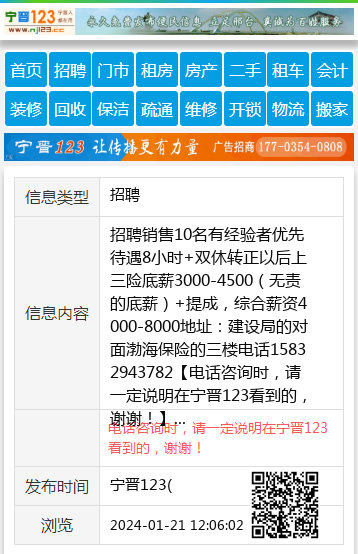 招聘销售10名有经验者优先待遇8小时+双休转正以后上三险底薪3000-4500(无责的底薪)+提成,综合薪资4000-8000地址:建设局的对面渤海保险的三楼电话15832943782 【电话咨询时,请一定说明在宁晋123看到的,谢谢!】 |