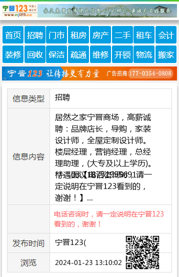 居然之家宁晋商场,高薪诚聘:品牌店长,导购,家装设计师,全屋定制设计师。楼层经理,营销经理,总经理助理,(大专及以上学历)。待遇面议18731995691