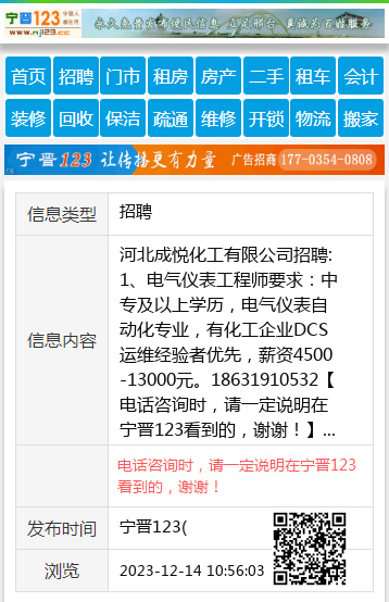 河北成悦化工有限公司招聘:1、电气仪表工程师要求:中专及以上学历,电气仪表自动化专业,有化工企业DCS运维经验者优先,薪资4500-13000元。18631910532 【电话咨询时,请一定说明在宁晋123看到的,谢谢!】 |