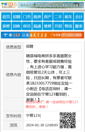 | 防骗提醒: | 宁晋123(www.nj123.cc)提醒您:手工活、网络兼职、刷单,都是骗子!凡以各种名义收取费用的都是骗子!找工作是往兜里挣钱,让你往外掏钱的都是骗子!异地招聘请提高警惕,谨防诈骗! |