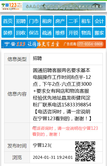 圆通招聘客服两名要求基本电脑操作工作时间8点半-12点,下午2点-六点工资3000+要求女有网店和物流客服经验优先地址晶龙街健民淀粉厂联系电话15833398854 【电话咨询时,请一定说明在宁晋123看到的,谢谢!】 |