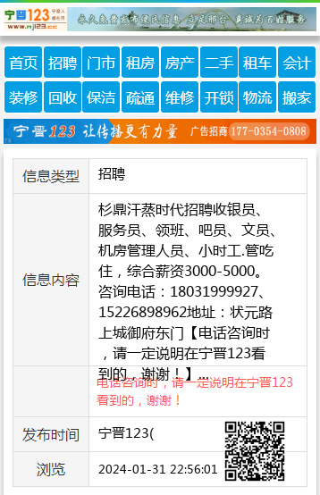 杉鼎汗蒸时代招聘收银员、服务员、领班、吧员、文员、机房管理人员、小时工.管吃住,综合薪资3000-5000。咨询电话:18031999927、15226898962地址:状元路上城御府东门 【电话咨询时,请一定说明在宁晋123看到的,谢谢!】 |