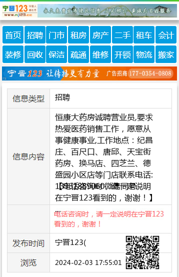 恒康大药房诚聘营业员,要求热爱医药销售工作,愿意从事健康事业,工作地点:纪昌庄、百尺口、唐邱、天宝街药房、换马店、四芝兰、德盛园小区店等门店联系电话:13931889060微信同号