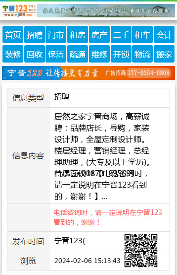 居然之家宁晋商场,高薪诚聘:品牌店长,导购,家装设计师,全屋定制设计师。楼层经理,营销经理,总经理助理,(大专及以上学历)。待遇面议18731995691
