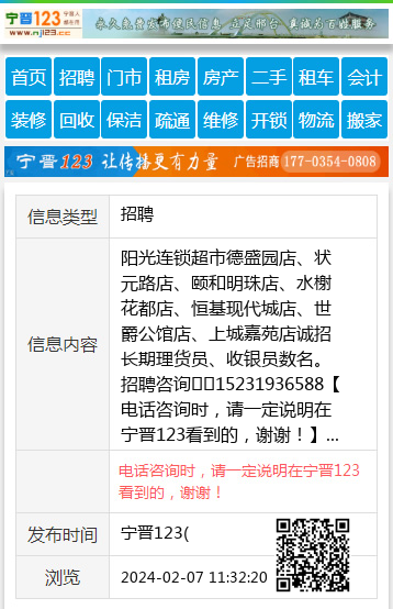 阳光连锁超市德盛园店、状元路店、颐和明珠店、水榭花都店、恒基现代城店、世爵公馆店、上城嘉苑店诚招长期理货员、收银员数名。招聘咨询☎️15231936588 【电话咨询时,请一定说明在宁晋123看到的,谢谢!】 |