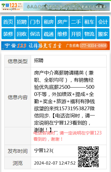 房产中介高薪聘请精英(兼职、全职均可),有销售经验优先底薪2500———5000不等,外加绩效+提成+全勤+奖金+旅游+福利有挣钱欲望的来找15731953827微信同步. 【电话咨询时,请一定说明在宁晋123看到的,谢谢!】 |