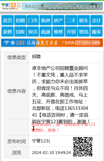 | 防骗提醒: | 宁晋123(www.nj123.cc)提醒您:手工活、网络兼职、刷单,都是骗子!凡以各种名义收取费用的都是骗子!找工作是往兜里挣钱,让你往外掏钱的都是骗子!异地招聘请提高警惕,谨防诈骗! |