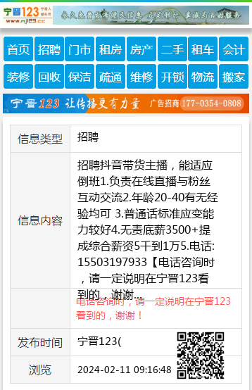| 防骗提醒: | 宁晋123(www.nj123.cc)提醒您:手工活、网络兼职、刷单,都是骗子!凡以各种名义收取费用的都是骗子!找工作是往兜里挣钱,让你往外掏钱的都是骗子!异地招聘请提高警惕,谨防诈骗! |