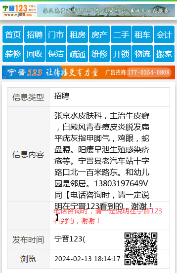 张京水皮肤科,主治牛皮癣,白殿风青春痘皮炎脱发扁平疣灰指甲脚气,鸡眼,蛇盘腰。阳痿早泄生殖感染疥疮等。宁晋县老汽车站十字路口北一百米路东。和幼儿园是邻居。13803197649V同 【电话咨询时,请一定说明在宁晋123看到的,谢谢!】 |