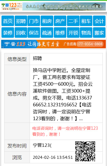 | 防骗提醒: | 宁晋123(www.nj123.cc)提醒您:手工活、网络兼职、刷单,都是骗子!凡以各种名义收取费用的都是骗子!找工作是往兜里挣钱,让你往外掏钱的都是骗子!异地招聘请提高警惕,谨防诈骗! |