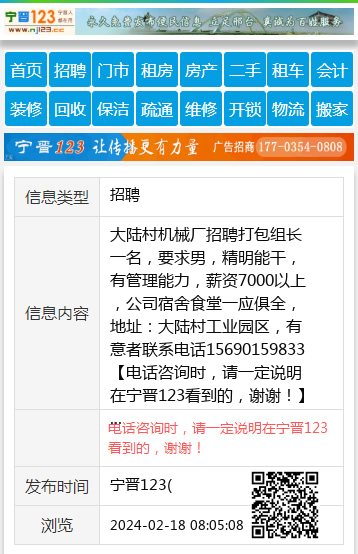 大陆村机械厂招聘打包组长一名,要求男,精明能干,有管理能力,薪资7000以上,公司宿舍食堂一应俱全,地址:大陆村工业园区,有意者联系电话15690159833 【电话咨询时,请一定说明在宁晋123看到的,谢谢!】 |