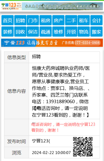 【电话咨询时,请一定说明在宁晋123看到的,谢谢!】 |