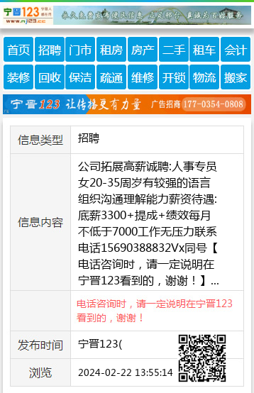 | 防骗提醒: | 宁晋123(www.nj123.cc)提醒您:手工活、网络兼职、刷单,都是骗子!凡以各种名义收取费用的都是骗子!找工作是往兜里挣钱,让你往外掏钱的都是骗子!异地招聘请提高警惕,谨防诈骗! |