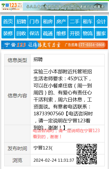 实验三小本部附近托管班招生活老师要求:45岁以下,可以在小餐桌住宿(周一到周四)的、有爱心有责任心干活利索,周六日休息,工资面谈。有意者电话联系:18733907560 【电话咨询时,请一定说明在宁晋123看到的,谢谢!】 |
