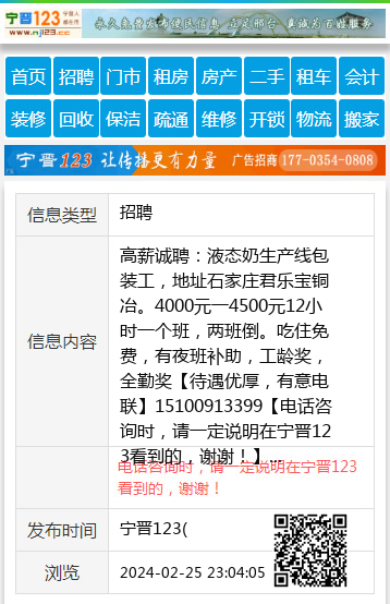 | 防骗提醒: | 宁晋123(www.nj123.cc)提醒您:手工活、网络兼职、刷单,都是骗子!凡以各种名义收取费用的都是骗子!找工作是往兜里挣钱,让你往外掏钱的都是骗子!异地招聘请提高警惕,谨防诈骗! |
