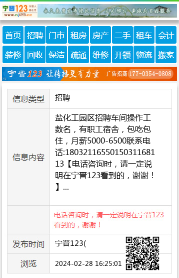 盐化工园区招聘车间操作工数名,有职工宿舍,包吃包住,月薪5000-6500联系电话:1803211655015031168113 【电话咨询时,请一定说明在宁晋123看到的,谢谢!】 |