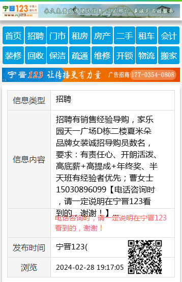 | 防骗提醒: | 宁晋123(www.nj123.cc)提醒您:手工活、网络兼职、刷单,都是骗子!凡以各种名义收取费用的都是骗子!找工作是往兜里挣钱,让你往外掏钱的都是骗子!异地招聘请提高警惕,谨防诈骗! |