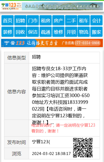 | 防骗提醒: | 宁晋123(www.nj123.cc)提醒您:手工活、网络兼职、刷单,都是骗子!凡以各种名义收取费用的都是骗子!找工作是往兜里挣钱,让你往外掏钱的都是骗子!异地招聘请提高警惕,谨防诈骗! |