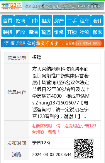 方大采纳能源科技招聘平面设计网络推广新媒体运营会展市场营销3至6名双休法定节假日22至30岁专科及以上学历底薪4000+提成电话Ms.Zhang13716016077 【电话咨询时,请一定说明在宁晋123看到的,谢谢!】 |