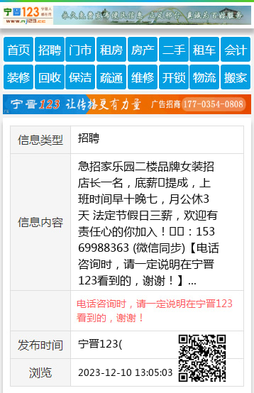 急招家乐园二楼品牌女装招店长一名,底薪➕提成,上班时间早十晚七,月公休3天 法定节假日三薪,欢迎有责任心的你加入!☎️:15369988363 (微信同步) 【电话咨询时,请一定说明在宁晋123看到的,谢谢!】 |