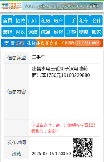 免责声明:本栏目信息由网友自行发布,宁晋123不承担任何责任!提高警惕,谨防诈骗!做推广、做信息置顶!请加宁晋123客服微信:ningjin009