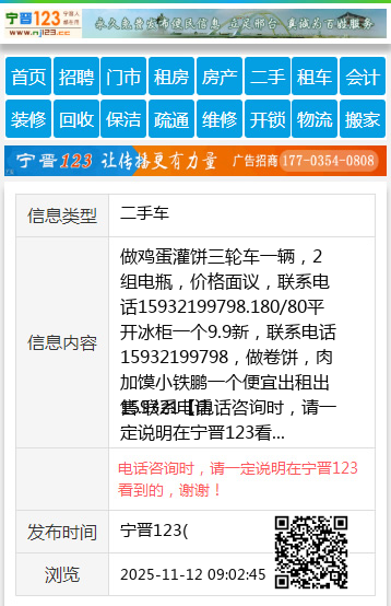 做鸡蛋灌饼三轮车一辆,2组电瓶,价格面议,联系电话15932199798.180/80平开冰柜一个9.9新,联系电话15932199798,做卷饼,肉加馍小铁鹏一个便宜出租出售.联系电话