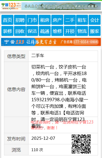 切菜机一台,饺子皮机一台,绞肉机一台,平开冰柜180/80一台,烤肠机一台,电煎饼炉一台,鸡蛋灌饼三轮车一辆,便宜出,联系电话15932199798.小南海小屋一个可以干肉加馍,有烤冷面等,联系电话1 【电话咨询时,请一定说明在宁晋123看到的,谢谢!】 |