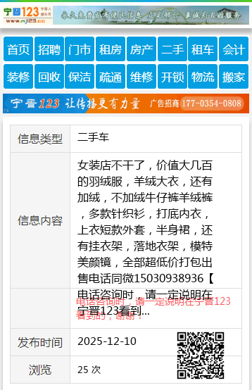 女装店不干了,价值大几百的羽绒服,羊绒大衣,还有加绒,不加绒牛仔裤羊绒裤,多款针织衫,打底内衣,上衣短款外套,半身裙,还有挂衣架,落地衣架,模特美颜镜,全部超低价打包出售电话同微15030938936 【电话咨询时,请一定说明在宁晋123看到的,谢谢!】 |