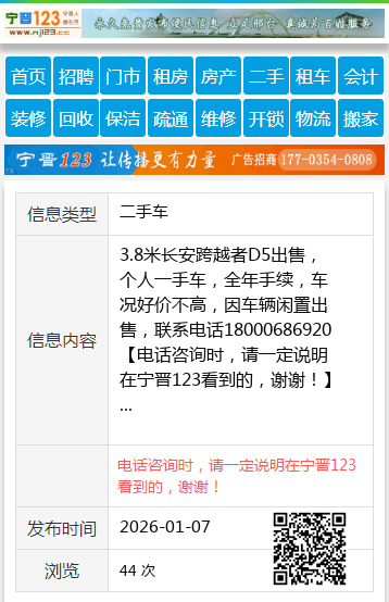 免责声明:本栏目信息由网友自行发布,宁晋123不承担任何责任!提高警惕,谨防诈骗!做推广、做信息置顶!请加宁晋123客服微信:ningjin009