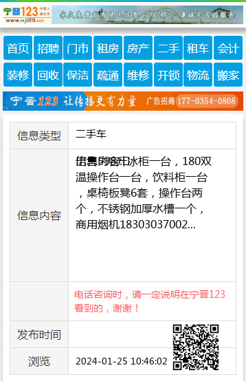 出售598升冰柜一台,180双温操作台一台,饮料柜一台,桌椅板凳6套,操作台两个,不锈钢加厚水槽一个,商用烟机18303037002 【电话咨询时,请一定说明在宁晋123看到的,谢谢!】 |