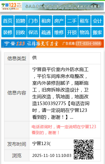 宁晋县平价室内外防水施工,平价车间库房水电整改,室内外装修刮腻子,隔断施工,旧房拆除改造设计,卫生间改造,筑地面,地面改造15303392775 【电话咨询时,请一定说明在宁晋123看到的,谢谢!】 |