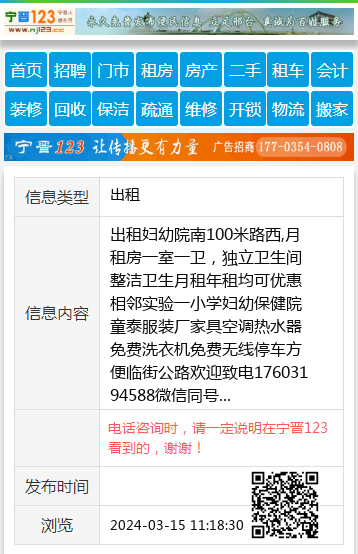 出租妇幼院南100米路西,月租房一室一卫,独立卫生间整洁卫生月租年租均可优惠相邻实验一小学妇幼保健院童泰服装厂家具空调热水器免费洗衣机免费无线停车方便临街公路欢迎致电17603194588微信同号 【电话咨询时,请一定说明在宁晋123看到的,谢谢!】 |