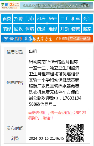 妇幼院南150米路西月租房一室一卫,独立卫生间整洁卫生月租年租均可优惠相邻实验一小学妇幼保健院童泰服装厂家具空调热水器免费洗衣机免费无线停车方便临街公路欢迎致电,17603194588微信同号 【电话咨询时,请一定说明在宁晋123看到的,谢谢!】 |