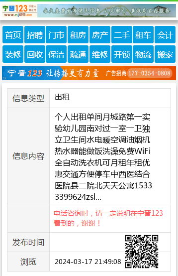 个人出租单间月城路第一实验幼儿园南对过一室一卫独立卫生间水电暖空调油烟机热水器能做饭洗澡免费WiFi全自动洗衣机可月租年租优惠交通方便停车中西医结合医院县二院北天天公寓15333399624zsl 【电话咨询时,请一定说明在宁晋123看到的,谢谢!】 |