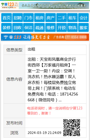 出租:天宝街凤凰商业步行街西邻【万家福月租房】一室一卫一厨!内设:空调!洗衣机!热水器浴霸!双人床衣柜!每楼层免费独立宽带上网!门禁系统!电动车免费充电!电话:18714256668(微信同号) 【电话咨询时,请一定说明在宁晋123看到的,谢谢!】 |