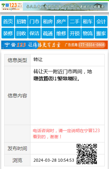 转让天一附近门市两间,地理位置佳,繁华地段。 电话15731970188