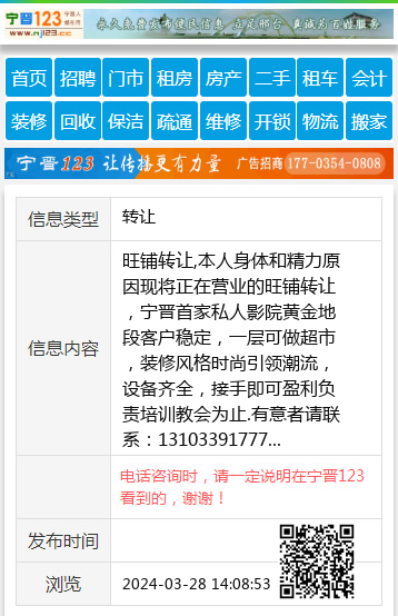 旺铺转让,本人身体和精力原因现将正在营业的旺铺转让,宁晋首家私人影院黄金地段客户稳定,一层可做超市,装修风格时尚引领潮流,设备齐全,接手即可盈利负责培训教会为止.有意者请联系:13103391777 【电话咨询时,请一定说明在宁晋123看到的,谢谢!】 |
