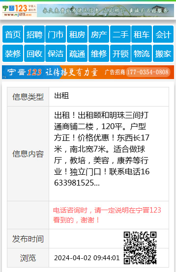出租!出租颐和明珠三间打通商铺二楼,120平。户型方正!价格优惠!东西长17米,南北宽7米。适合做球厅,教培,美容,康养等行业!独立门口!联系电话16633981525 【电话咨询时,请一定说明在宁晋123看到的,谢谢!】 |