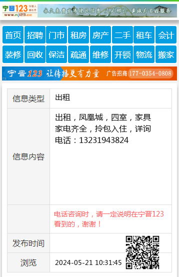 出租,凤凰城,四室,家具家电齐全,拎包入住,详询电话:13231943824