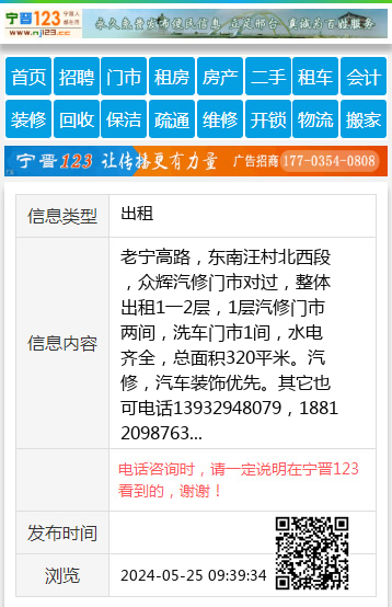 老宁高路,东南汪村北西段,众辉汽修门市对过,整体出租1一2层,1层汽修门市两间,洗车门市1间,水电齐全,总面积320平米。汽修,汽车装饰优先。其它也可电话13932948079,18812098763 【电话咨询时,请一定说明在宁晋123看到的,谢谢!】 |