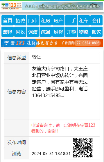 友谊大街宁司路口,大王庄北口营业中饭店转让,有固定客户,因有家中有事无法经营,接手即可盈利,电话13643215485 【电话咨询时,请一定说明在宁晋123看到的,谢谢!】 |