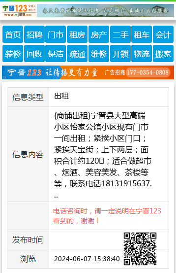 {商铺出租}宁晋县大型高端小区怡家公馆小区现有门市一间出租;紧挨小区门口;紧挨天宝街;上下两层;面积合计约120㎡;适合做超市、烟酒、美容美发、茶楼等等,联系电话18131915637 【电话咨询时,请一定说明在宁晋123看到的,谢谢!】 |