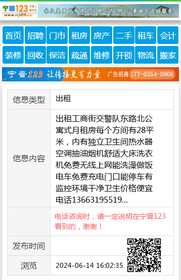 出租工商街交警队东路北公寓式月租房每个方间有28平米,内有独立卫生间热水器空调抽油烟机舒适大床洗衣机免费无线上网能洗澡做饭电车免费充电门口能停车有监控环境干净卫生价格便宜电话13663195519 【电话咨询时,请一定说明在宁晋123看到的,谢谢!】 |